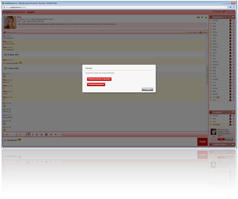 klepetati, imaš na dosegu celoten uporabnikov profil (fotografije, opis, podatke, ...), zato je komunikacija na NajdiLjubezen klepetu pristnejša.