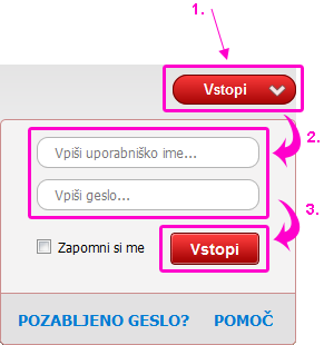 Vpiši uporabniško ime in geslo v polja in klikni na Vstopi