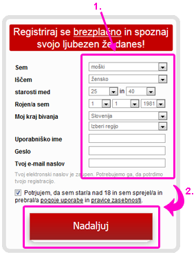 Izpolni obrazec in klikni na gumb Nadaljuj